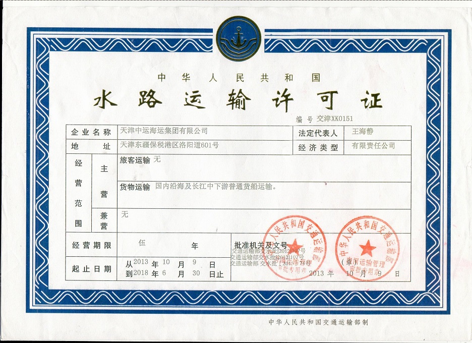 國內(nèi)水路運輸經(jīng)營許可證